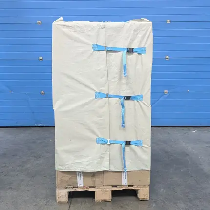 La housse réutilisable Pallet Wrap peut être équipée d’une coiffe, cette option placée tout en haut des marchandises de la palette assure ainsi une protection supplémentaire lors du transport.